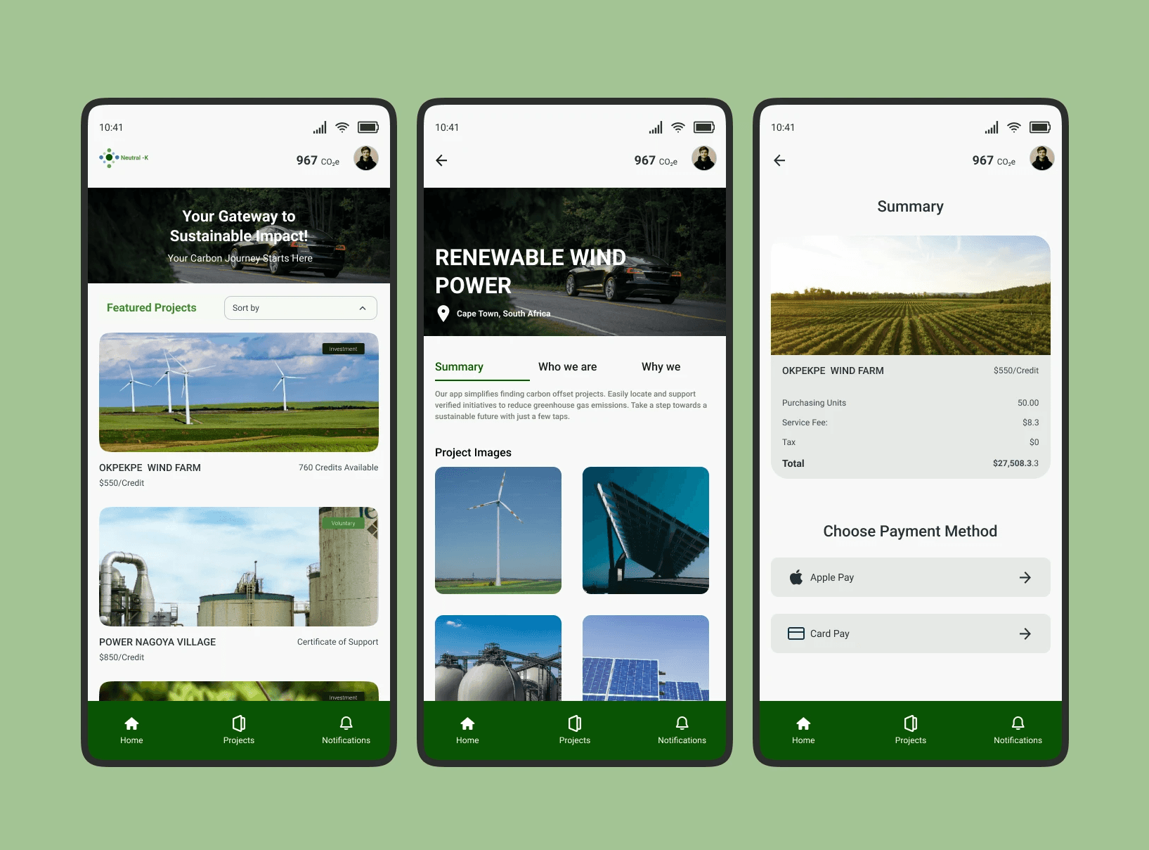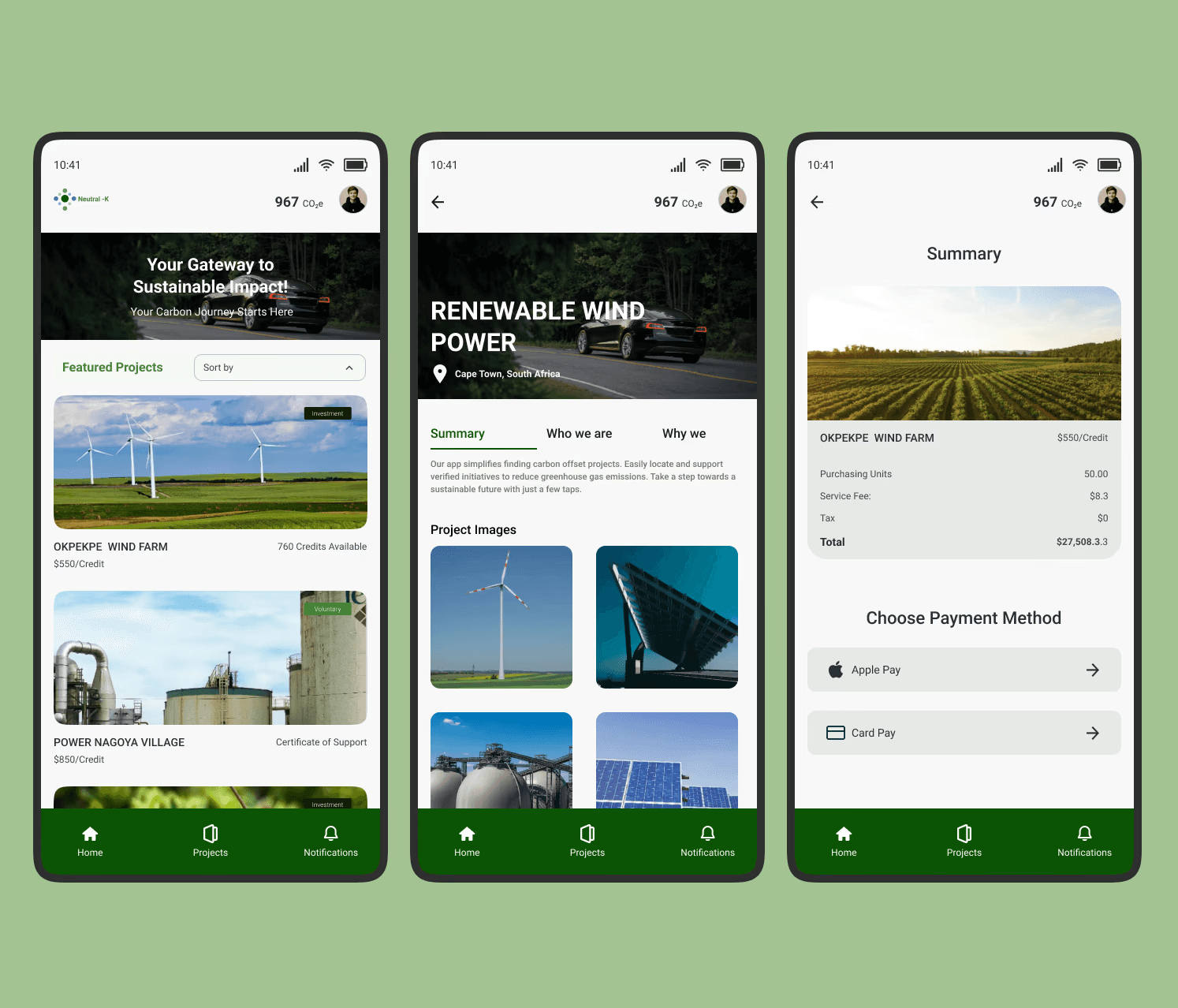 A user friendly mobile application that simplifies the process for software companies to discover and engage in greenhouse gas reduction projects, enabling them to earn carbon credits.